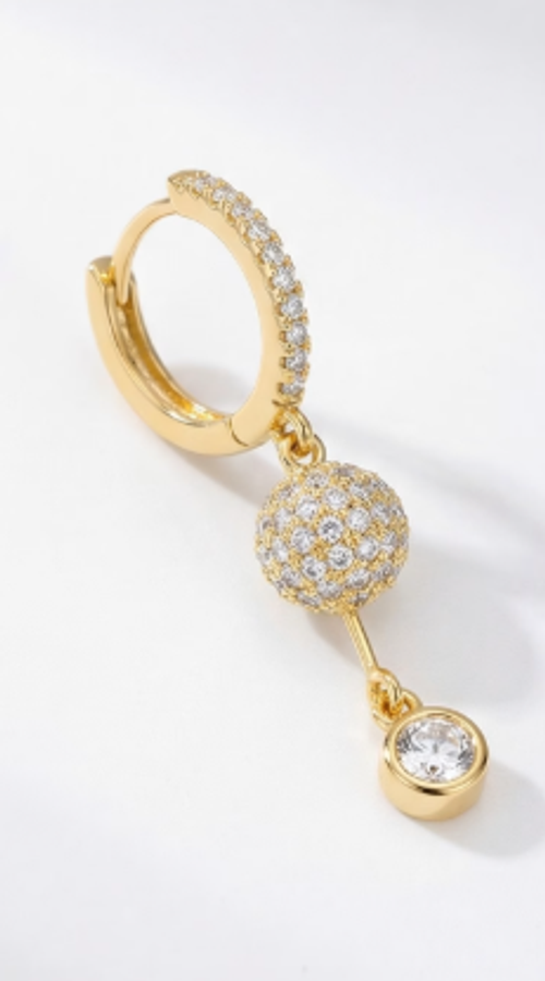Elegant Double Drop Crystal Earrings - Gold Huggie Hoops with Pave Bead & Solitaire Chakra Pendant | Pay on Delivery